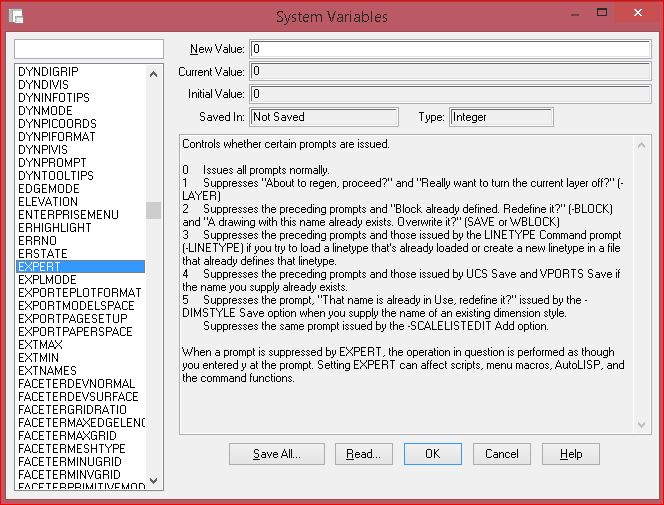 Dadgad Posted August 14, 2015 Posted August 14, 2015 (edited) Having revisited your post, and Tiger's suggestion, I checked and saw that you do have DYNAMIC INPUT enabled on your machine, it sounds like what you really need to do is to check your dynamic input drafting settings. These are highly configurable, depending on what information you deem to be the most relevant in your work. Check out the DRAFTING SETTINGS screenshot first, as this is most likely the cause of your confusion. As Taylor suggested, you could reset your system variables to the default OOTB settings. I wouldn't enjoy doing that, because my system variables have been fine tuned to behave as I like them. So I keep an .svf file as a backup for all those settings. Before we do anything else though, try checking your EXPERT system variable setting. To restore your DEFAULT system variable settings, if, and only it, that won't be a huge inconvenience, do the following Types SYSVDLG at the commandline and hit enter. Once the dialog box opens, if you REALLY ARE SURE you want to restore them all to the original Autocad settings, you can use the READ icon at the bottom of the dialog box. If you have, or had, previously used the SAVE ALL option at the bottom of that same dialog box, you would be able to use the READ button, and then browse to your saved .svf (system variable file) to restore your messed up settings. Edited August 14, 2015 by Dadgad Quote