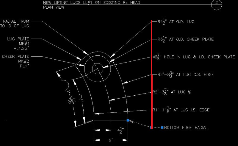 ColinPearson Posted November 5, 2015 Posted November 5, 2015 Hello world. Looking for a bit of help here on these dimensions... Most are radius dimensions and one is a diameter, all have the same dimension style. I snapped a ray from the vertex of one leader and then snapped each dimension's grip to that ray so they all line up (cause I'm OCD like that). Anyone know why some have the horizontal portion of the leader and some don't? Thanks! Quote