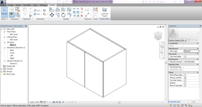 1. I created a Base cabinet Family (see picture: 3D View)