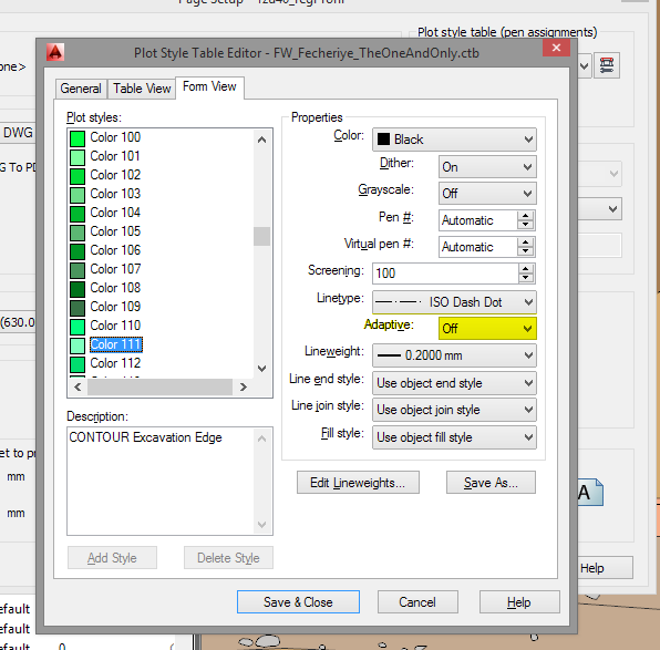 utor Posted January 12, 2016 Author Posted January 12, 2016 hey rkmcswain, thanks for your help, but this did workin an test drawing, but not in my existing one. could it be that this doesnt work, if the dash-dot style is assigned by a color dependant plot style? EDIT: okay i found out, you have to turn the dropdown "Adaptive" to "Off" - now it works. utor Quote