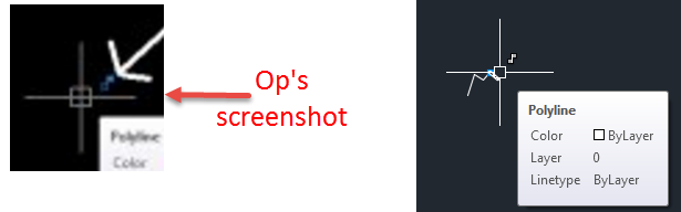 RobDraw Posted February 11, 2016 Posted February 11, 2016 recently i have selecting poly line it shows some symbol,these symbols are disturbing the poly line selection.kindly please check the attachment for more info. It looks like you are not in a command. If that is so, I don't think it is a cursor badge that is controlled by the CURSORBADGE variable. I'm thinking it might be indicating constraints. Can you get a better screenshot of it? I find it funny that you've got the properties preview box turned on but you find that tiny icon disturbing. Quote