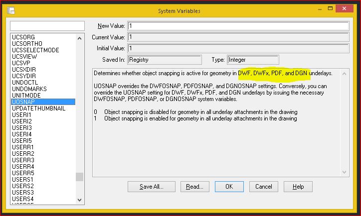 samifox Posted June 6, 2016 Author Posted June 6, 2016 hi' what sysvar is response to disabling snap to dwg underlay? i use UOSNAP=0 but it still snapping Quote
