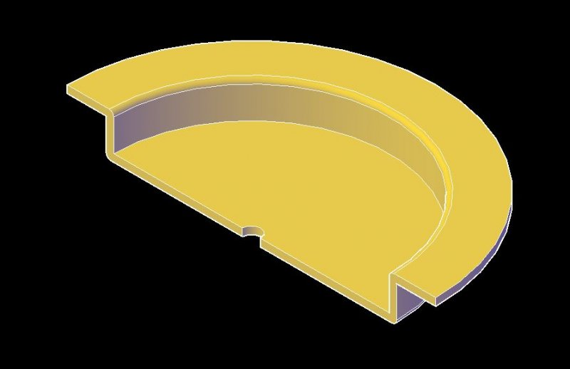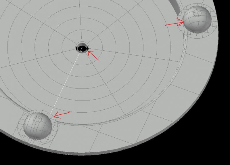 Back to the attachment plate. Here's a 180 degree cutaway; it's a 3D solid. I'll need some direction regarding the three "domes" and what is supposed to be under them. I'm assuming they are hollow. What is the wall thickness? Are the circular disks under them of any particular thickness? Are they flush with the top of the plate or do they sit on top of it like a raised disk?
