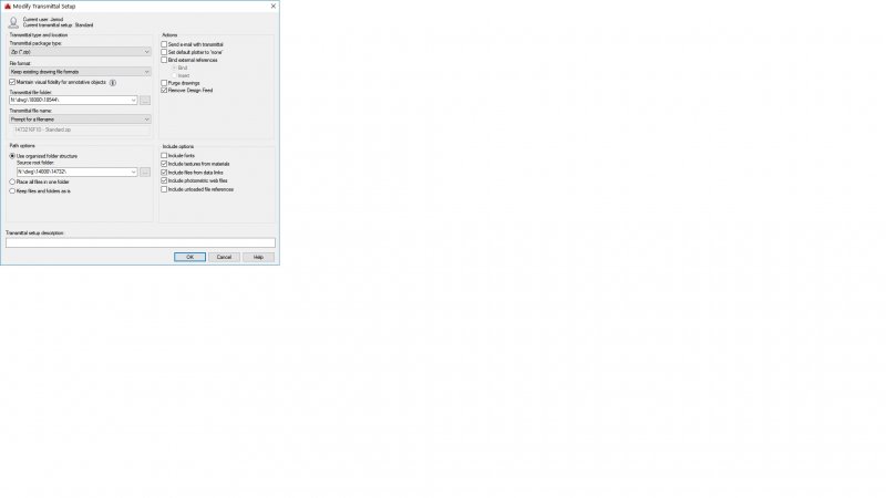 Dadgad Posted November 23, 2016 Posted November 23, 2016 (edited) Sorry to hear that. I looked through the SYSVDLG to see if there were any system variables which might come into play, couldn't see any. Looking for options like are available in the Auto Publish dialog. OK, I think I figured it out. Change your transmittal dialog settings modifications to the ones shown in the screenshot, and I think you will be back on the tracks. If that works for you, then be sure to give it a different name and SAVE that setup, and set it as current in the dialog box. Edited November 23, 2016 by Dadgad Quote