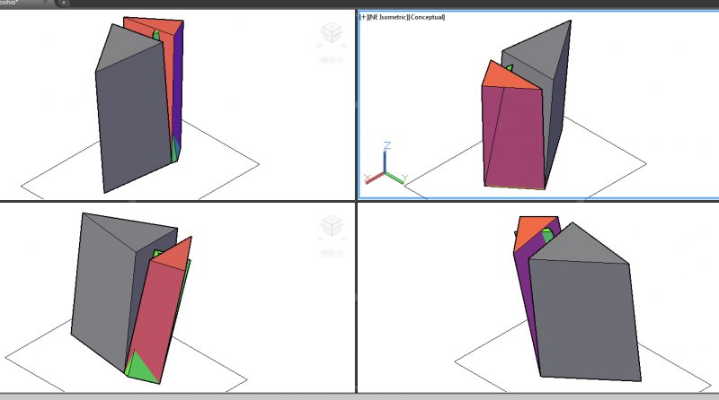 joao56777 Posted November 26, 2016 Author Posted November 26, 2016 Were you intending to extrude all the triangles in the same or different directions? What height did you plan on using? Would it be the same for all three triangles or different? Extruding each triangle does yield a 3D solid to begin with. What did you do different? I extruded all three triangles in the same direction 50mm. This is what I got as a result as seen via the four standard isometric views. [ATTACH]59914[/ATTACH] What i want is to extrude, to made a Union, to make one solid, and then make the mass properties and achieve the Volume. The extrude must be done with the extrude (path) to make the extrude in the "Z". My issue is, i can not make a solid because when i made the union, autocad dont let me done this. I've tried too, with a solid, and the with UCS, and slices cut a big block, with the shape of 3 triangules. The lengh of extrude is 15. I dont know why the autocad dont let me UNION the three extruded triangles. The gap between 3 triangles, must be cover. Quote