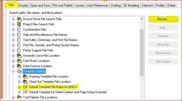 Dadgad Posted April 28, 2017 Posted April 28, 2017 Welcome to CADTutor Cincy. Probably worth adding, you will need to be sure that the template with which you will be working is in the appropriate units of measurement. Most of the standard Autocad templates are Imperial, unless they end with ISO, for metric. Any drawing can be SAVED AS a .dwt file, which as a coder, you likely already understand. Once you have created the template which you think fills the bill, you can set it in your OPTIONS. Click on the FILES tab, then you will find the TEMPLATE settings, where you can BROWSE to, and set the appropriate template as your DEFAULT QNEW template. Once you have designated it as your default, whenever you open the program, that will be the template opened, or when you use the QNEW command. It is quite likely that you may wind up with multiple customized .dwts, for different tasks, units of measurement, or whatever. Quote