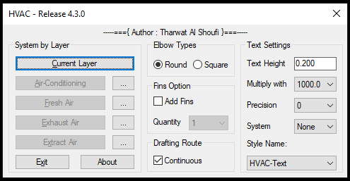 Tharwat Posted February 5, 2020 Author Posted February 5, 2020 This program is updated to release: 4.3.0 now as shown in the following image: https://autolispprograms.wordpress.com/hvac/hvac-application/ Quote
