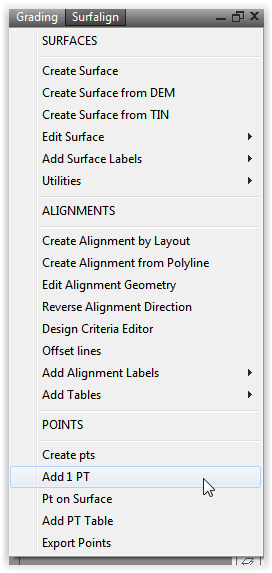 BIGAL Posted July 8, 2017 Posted July 8, 2017 I think you missed what Dadgad was suggesting you can open any toolbar in a workspace. I opened Modelling as a test using 2013. As a shortcut type "-toolbar Modeling Show" Here is the source for the Surfal.mnu its just a text file just do CUI and copy and paste the commands out into your menu. ***MENUGROUP=SURFAL ***POP15 **SURFALIGN [surfalign] [sURFACES] [--] [Create Surface]^c^c_AeccCreateSurface [Create Surface from DEM]^c^c_AeccCreateSurfaceGridFromDEM [Create Surface from TIN]^c^c_AeccCreateSurfaceFromTIN [->Edit Surface] [Edit Surface Style...]^c^c_AeccEditSurfaceStyle [Edit Surface Properties]^c^c_AeccEditSurfaceProperties [Add Line]^C^C_AeccAddSurfaceLine [Delete Line]^c^c_AeccDeleteSurfaceLine [swap Edge]^c^c_AeccEditSurfaceSwapEdge [Add Point]^c^c_AddPointToSurface [Delete Point]^c^c_AeccDeleteSurfacePoint [Modify Point]^c^c_AeccEditSurfacePoint [Move Point]^C^C_AeccMoveSurfacePoint [Minimize Flat Areas]^c^c_AeccMinimizeSurfaceFlatAreas [Raise/Lower Surface]^c^c_AeccRaiseLowerSurface [Paste Surface...]^c^c_AeccEditSurfacePaste [Add Boundaries]^c^c_AeccAddSurfaceBoundaries [smooth Surface]^c^c_AeccSmoothSurface [<-Simplify Surface]^c^c_AeccSimplifySurface [->Add Surface Labels]^c^c_AeccAddSurfaceLabels [Add slope Surf Labels]^c^c_AeccAddSurfaceSlopeLabel [spot Elevation]^c^c_AeccAddSurfaceSpotElevLabel [spot Elevations on Grid]^c^c_AeccAddSpotElevLabelsOnGrid [Contour - Single]^c^c_AeccAddContourLabelingSingle [Contour - Multiple]^c^c_AeccAddContourLabeling [Contour Multiple at Interval]^c^c_AeccAddContourLabelingGroup [<-Add legend table]^c^_AeccAddSurfaceLegendTable [->Utilities] [Export to DEM]^c^c_AeccSurfaceExportToDem [Volumes Dashboard]^C^C_AeccVolumesDashboard [Water Drop...]^c^c_AeccCreateSurfaceWaterDrop [Catchment Area]^c^c_AeccCatchmentArea [Check for Contour Problems]^c^c_AeccCheckForContourProblems [Drape Image]^c^c_AeccDrapeImage [Extract Objects From Surface]^c^c_AeccSurfaceExtractObjects [Move Blocks to Surface]^c^c_AeccMoveBlocksToSurface [Move Blocks to Attribute Elevation]^c^c_AeccMOVEBLOCKSTOATTRIBELEV [<-Move Text to Elevation]^c^c_AeccMoveTextToElevation [--] [ALIGNMENTS] [--] [Create Alignment by Layout]^c^c_AeccCreateAlignmentLayout [Create Alignment from Polyline]^c^c_AeccCreateAlignmentEntities [Edit Alignment Geometry]^C^C^p_AeccEditAlignment [Reverse Alignment Direction]^c^c_AeccReverseAlignDirection [Design Criteria Editor]^C^c_AeccDesignCriteriaEditor [Offset lines]^c^cOffsetfeature [->Add Alignment Labels]^c^c_AeccAddAlignLabels [Add/Edit Station Labels]^c^c_AeccEditAlignmentLabels [station/Offset]^c^c_AeccAddAlignOffXYLbl [single Segment]^c^c_AeccAddAlignSegLbl [Multiple Segment]^c^c_AeccAddAlignSegLbls [Point of Intersection]^c^c_AeccAddAlignPointOfIntLbl [<-Multiple Point of Intersection]^c^c_AeccAddAlignPointOfIntLbls [->Add Tables] [Add Line...]^c^c_AeccAddAlignmentLineTable [Add Curve...]^c^c_AeccAddAlignmentCurveTable [Add Spiral...]^c^c_AeccAddAlignmentSpiralTable [Add Segments]^c^c_AeccAddAlignmentSegmentTable [<-Renumber Tags]^c^c_AeccEditTagNumbers [--] [POINTS] [--] [Create pts]^c^c_AeccCreatePoints [Add 1 PT]^C^C_AeccCreatePointManual [Pt on Surface]^C^C_AeccCreatePointRandomPoints [Add PT Table]^C^C_AeccAddPointTable Quote