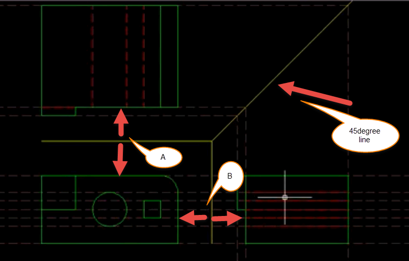 Sengna Posted March 16, 2018 Posted March 16, 2018 (edited) Hello, Just very basic questions, thank you for all your feedback and input in advance. i came across toturial about 3 views othograpic projection, my questions are: 1. Is the space or distance A and B must be equaled in order to get the accurate when project the line to create the next view? 2. I assume the projection angle must always be 45 degree correct? Edited March 16, 2018 by Sengna clarify Quote