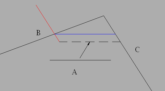 CyberAngel Posted August 30, 2018 Posted August 30, 2018 This problem is easily solved with trigonometry. You have the angles of all three corners (assuming the lines remain as shown) and the length of one side. For a geometric solution, copy one side of the triangle (call it B) to the far end of the line (call that A). Move A and B together to some point on the other line (predictably called C). You now have two parallel lines, C and C', separated by the desired distance. If you don't have an intersection between C' and B, create one with the Fillet or Extend command. Move line A, using the the end that touches C' as your base point, to the point where C' and B intersect. Because C' is parallel to C, you've determined the proper length of B. Erase C'. In effect, we've created a parallelogram that has A connecting two corners. Sometimes you have to create a box to think outside of. Of course, if A isn't restrained to be horizontal, you have an infinite number of solutions. Quote