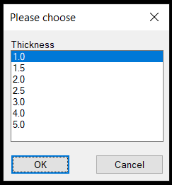 BIGAL Posted January 16, 2020 Posted January 16, 2020 Look at the while at enter thickness (setq ITEM Also if say all metric once chosen wrap it in a (if (not item2) so it skips asking again. If you have known thickness say like 10 off them look at my Multi radio buttons.lsp this will let you use a dcl for size or use a library LISTBOX dcl there out there as well pick from a list. (setq ans (atof (ah:butts but "V" '("Choose thickness " " 1" " 1.5" " 2" " 2.5" " 3" " 4" " 5" " 6" " 7")))) Quote