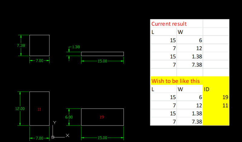 tefached Posted May 2, 2020 Author Posted May 2, 2020 (edited) thank you for your response, i can make the lines inside the rectangles to another layer and isolate only rectangles and text if that will make the lisp a lot easy. which ever is easier take the data from the rectangle or dimension, the main problem is i don't know how to include ID in the collected data the lisp was excellent but it is giving me wrong values on rectangles with multiple text inside for example: rectangle 1 has length = x width =y and ID is text1 text2 text3 some rectangles has only 1 text inside some has multiple Edited May 2, 2020 by tefached got the directory problem now Quote