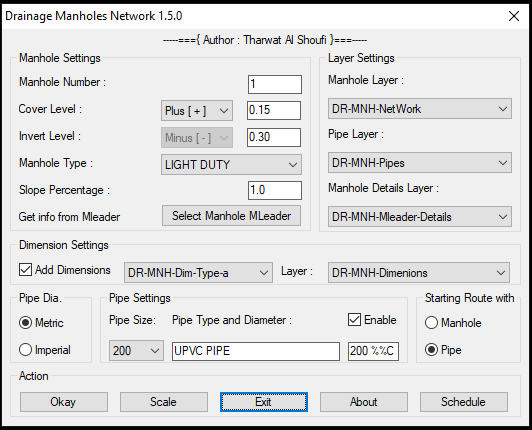 Tharwat Posted November 14, 2020 Posted November 14, 2020 (edited) This program is to draft the Drainage Manholes Network along with all the necessarily main requirements such Invert Levels and Manholes’ sizes based on the depth of manholes along with automatic dimensions and a dynamic option to start from any manhole at any level and many more options that can be found from the first glance of the dialog of the program. https://autolispprograms.wordpress.com/drainage-manholes-network/ Edited November 14, 2020 by Tharwat Quote