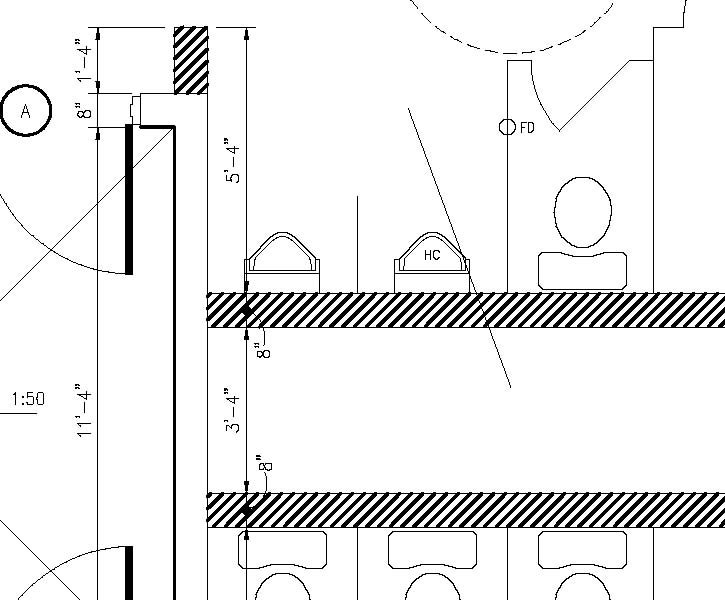 Teeds Posted February 10, 2009 Posted February 10, 2009 I ran into a real mystery today that HOPEFULLY someone will be able to shed some light on. To set the stage ... I use xrefs extensively and have combined them over the years without problems. Today that somehow went south ... The parts ... Model - I draw all of my linework in one file that has every plan view stacked on top of each other. I work them like we did pin bar back in the day to create the different plans. Text - The text is in a separate file, along with dimensions, symbols and poche' (hatch) etc. The model file is xref'ed into the text file for a background. The resulting text file is xref'ed into model space of the final plot file which has the sheet border in paper space. The problem ... My poche for the walls is plotting in the heaviest line that I have in my pen set, nevermind it is set to the lightest line by color. I used two different pen tables, and two differenct computers to verify the problem and got the same results. Now for the real mystery. I exploded the hatch just for grins to see if that made a difference ... nope. I changed the color of one line of the exploded hatch and it plotted to match it's color and everything to the right matched the correct (originally expected) line weight while the other side still plotted the heavy line. I erased everything and put the hatch in the final plot file. Nope ... still the same problem. On a whim, I added a single line that is on the same layer as the poche ... it plotted the correct width and is right on top of the hatch that is on the same layer and plots fat!!! I am attaching a clipped out section of the drawing for reference. The slash through the urinal is on the same layer as the hatch. I am guessing that there is a variable that is set wrong, but I cannot imagine which one. Any help will be appreciated! Quote