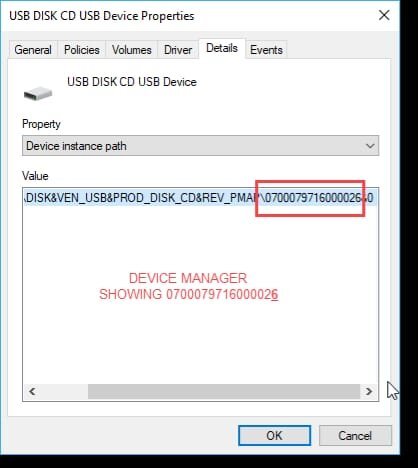 Eduardo Celiz Posted April 28, 2022 Posted April 28, 2022 Hello, I hope you can help me, I was looking for different forums and I could not find a way to obtain the serial number of a usb port, such as the image that I attached, however I did find some codes that they report a usb code to me but what when the usb is formatted it changes, I hope you can help me, the code that I want to obtain is the one that I show in the image. Quote