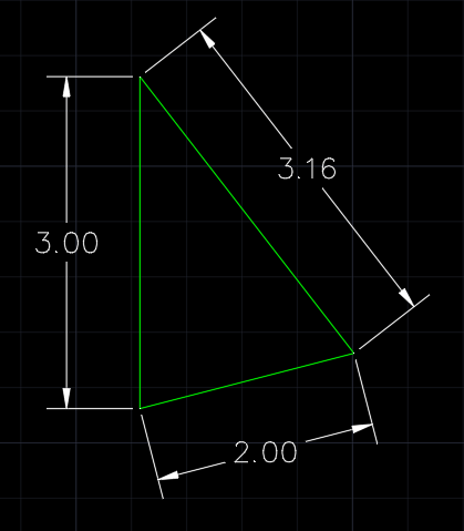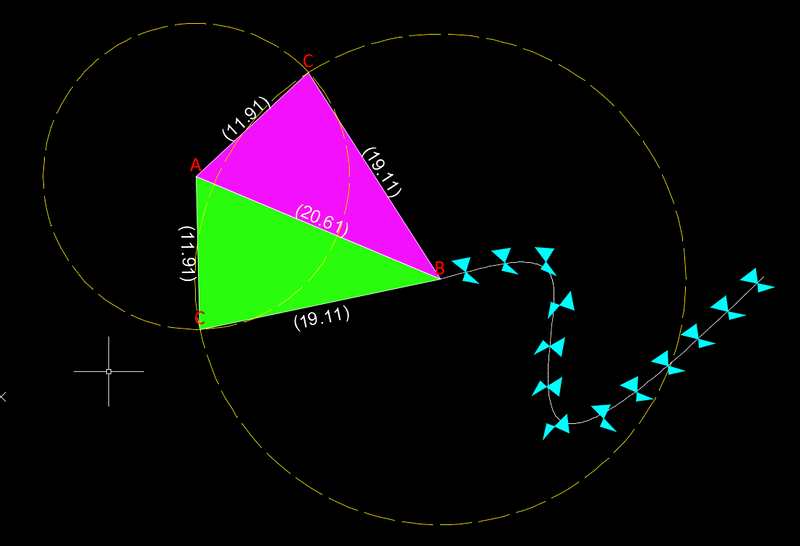 fuccaro Posted May 30, 2023 Posted May 30, 2023 Try this: (defun c:pp(/); l1 l2 l3 p1 p2 p3 p4 p area h h1 ang) (setq l1 3.0 l2 2.0 l3 4) (setq p1 (list 0 0) p2 (list 0 l1)) (setq p (* (+ l1 l2 l3) 0.5)) (setq area (sqrt (* p (- p l1) (- p l2) (- p l3)))) (setq h (/ area l1 0.5)) (setq h1 (sqrt (- (* l2 l2) (* h h)))) (setq ang (atan h h1)) (setq ang (if (> (* l3 l3) (+ (* l1 l1) (* h h))) (- PI ang) ang)) (setq p3 (polar p1 (+ ang (angle p1 p2)) l2)) (setq p4 (polar p1 (- (angle p1 p2) ang) l2)) (command "line" p1 p2 p3 p1 p4 p2 "") ) 1 Quote