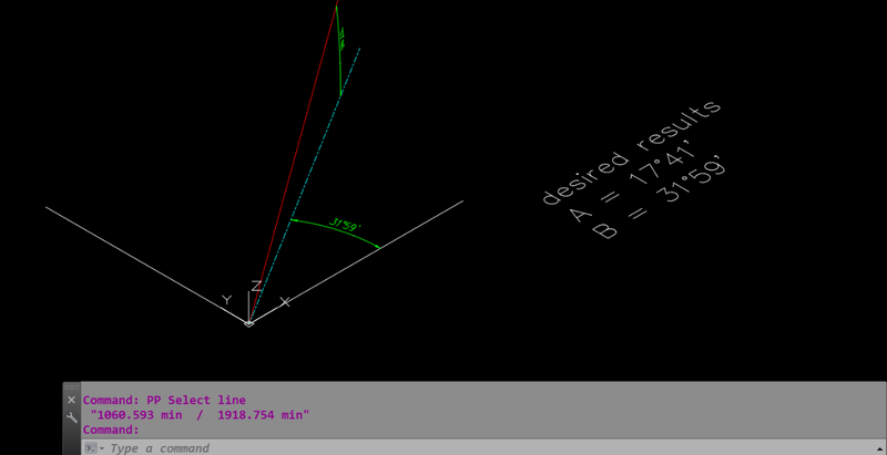 CongVenh Posted November 19, 2023 Author Posted November 19, 2023 4 hours ago, BIGAL said: Did you look for the mathematical answer ? Formulas with regards to planes. Then it could be converted to lisp. 4 hours ago, BIGAL said: Did you look for the mathematical answer ? Formulas with regards to planes. Then it could be converted to lisp. Hello. I want lisp to replace the DIST command in Autocad. Instead of reading the results from the DIST command, I want the angle measurement results (Angle A and Angle B as shown in the illustration) to be exported to excel or printed to the screen. Quote