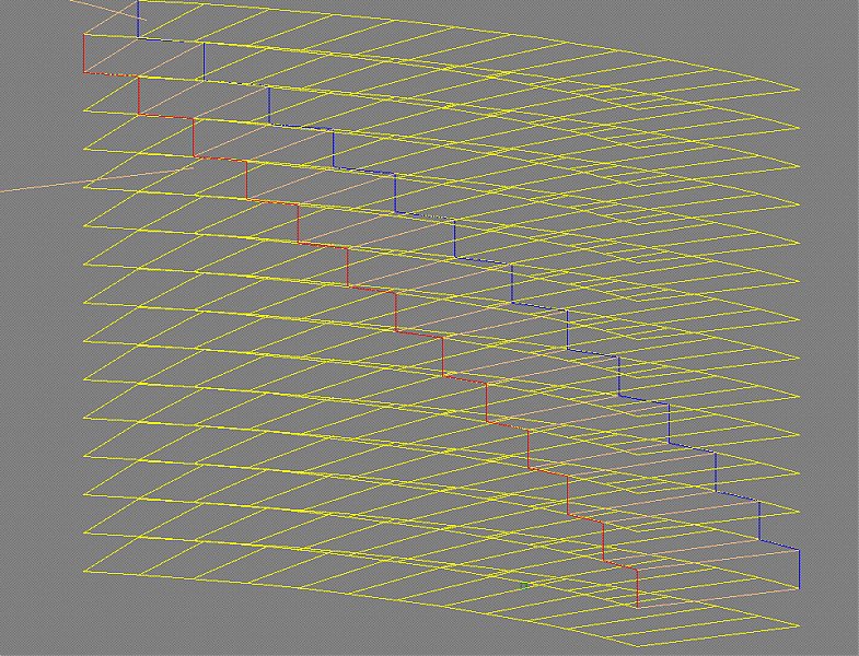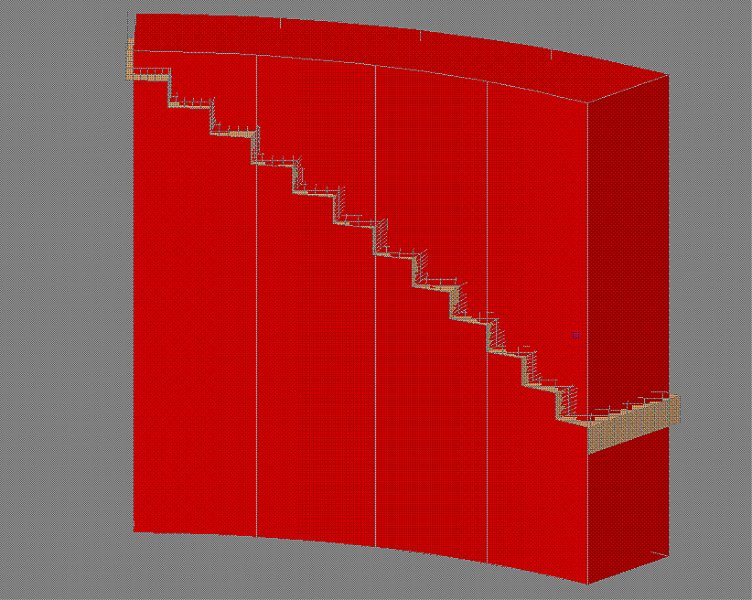 qball Posted February 28, 2009 Posted February 28, 2009 I made this curved stair model. I'm fairly new to the 3d, but I thought I'd toss this in here in case it helps someone. Step 1: plan view Step 2: copied the plan view multiple times x riser height. 3DPOLYLINE the treads and risers each side (red and blue). Then connected each side with LOFT Step 3: slicing planes by extruding lines from plan view. Step 4: sliced a box with surface planes. Step 5: sliced the new box with the lofted stairs. I originally had a problem slicing. Remember to make the slicing plane slice completely through the solid. Step 6: end product. Quote