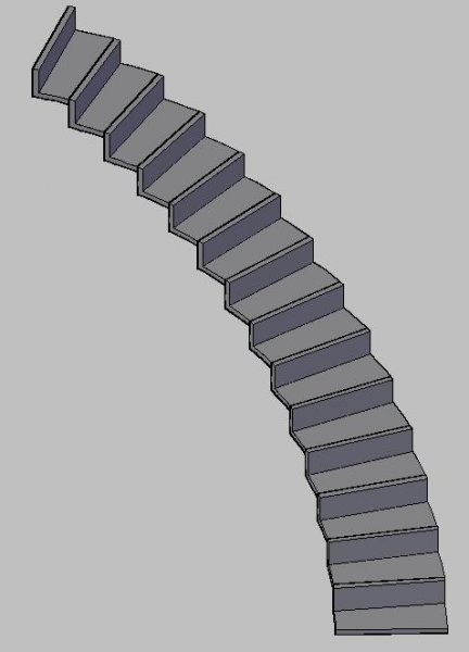 arjun_samar Posted March 1, 2009 Posted March 1, 2009 I made this curved stair model. I'm fairly new to the 3d, but I thought I'd toss this in here in case it helps someone.Step 1: plan view Step 2: copied the plan view multiple times x riser height. 3DPOLYLINE the treads and risers each side (red and blue). Then connected each side with LOFT Step 3: slicing planes by extruding lines from plan view. Step 4: sliced a box with surface planes. Step 5: sliced the new box with the lofted stairs. I originally had a problem slicing. Remember to make the slicing plane slice completely through the solid. Step 6: end product. hey thanks i never knew it before... thanks... cheersss Quote