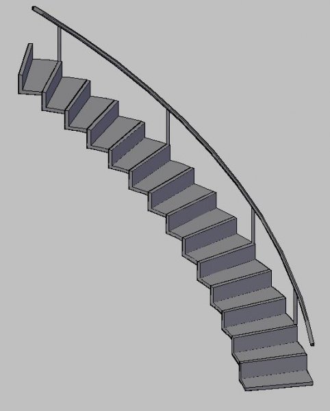 BIGAL Posted May 31, 2011 Posted May 31, 2011 Just to make you drool a full 3d spiral stair case single centre pole about 5 seconds ! How did I do it. like above you make 1 single tread and copy rotate and move in z plane. A lisp does that part, the stair includes a true spiral hand rail this is not that hard to make what you have to do is have an inclinded UCS then create an arc along which you extrude the hand rail it takes a little bit of common sense maths radius's twist angle etc but its really easy. For a company we worked for we did S bend stairs they looked fantastic. I am having trouble posting images else would show final result etc Quote
