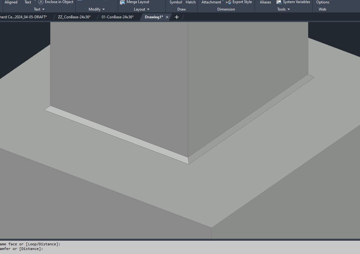 What is the easiest way to connect the 2 welding pieces 3/16 in weld in 3D AutoCad?      I was trying to use chamferedge command but not successful.   Thanks