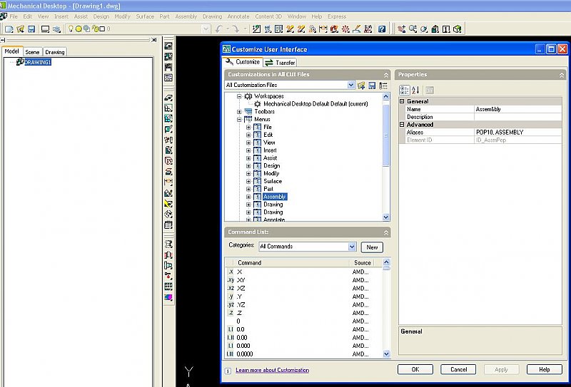 shift1313 Posted April 22, 2009 Posted April 22, 2009 well you can make a custom profile. Did you do the install for your computer or is this a work computer? do something else for me, under your Assist menu Customize>interface Look under your Menus like in the screen shot and see if Assembly is there. It probably wont be but im curious. I honestly dont remember how to modify the profiles to include everything, i would have to play around a bit to figure it out. I never use MDT so im hoping someone else will chime in for you. Quote