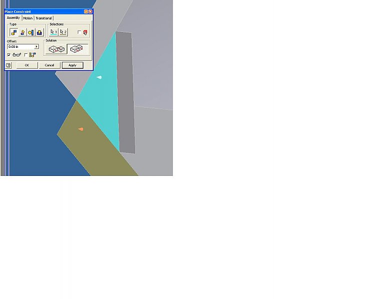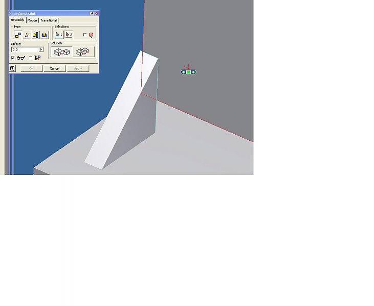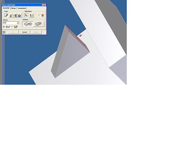 shift1313 Posted April 27, 2009 Posted April 27, 2009 i didnt look at your file cause i cant open it at work but if you have a triangle you need to constrain to two plates, i would just add coincident constraints(no offsets). Is this lined up on the edge of a part? if so you can do it with to constraints, if not i think you will need 3. Ill draw something up real quick. Quote