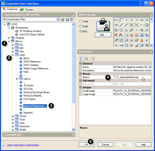 ^C^C_circle. To cause the Circle command to auto-repeat, simply add a "*" before the existing macro. Once edited, your macro should look like this:*^C^C_circle. - Now click the "OK" button to save and return to the drawing.