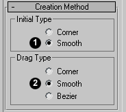 . You should then see two columns of buttons on the "Object Type" rollout. Click on the "Line" button. Before you start to draw the line, there are a couple more settings you need to make. In order to ensure that the animation flows smoothly you need to draw a line which doesn't have any sharp corners. To do this, find the "Creation Method" rollout on the Command Panel and set both the "Initial Type" and "Drag Type" options to "Smooth" by clicking on the appropriate radio buttons. You are now ready to start drawing the path.