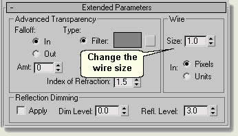 - With Wire selected in Basic Shader Parameters change the size of the wire on this rollout