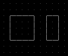 Although you can use the command line to control the visibility of the grid by using the "ON" and "OFF" options this is more easily achieved using the F7 key or, better still, by clicking the GRID button on the status bar. However, the command line does offer some additional options. The Snap option allows you to automatically set the grid spacing to the current snap spacing (see Snap Mode below). You can also change the aspect ration of the grid. By default, the X and Y spacing of the Grid are the same, resulting in a regular square matrix of grid points. But you can display a grid with different X and Y spacing by using the "Aspect" option.