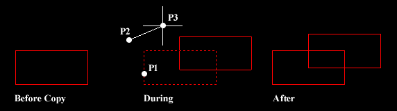 Notice that the "Base point", P2 and the "Second point", P3 do not have to be picked on or near the object. The two points are simply used to indicate the distance and direction of the copied object from the original object.