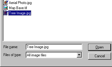 . When the Select Image File dialogue box appears, find your way to your work folder and select the Tree Image.jpg file.