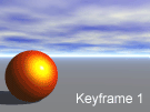 Let's assume that the current position of our sphere is its start position for the animation. In order to mark this as a point in time we must add a keyframe for the sphere. We will add a start keyframe at time = zero because that's where we want our animation to begin. But it doesn't have to be at zero. For example, if you were creating a movie where everything was stationary for one second, we could make our first keyframe at time = 1 second. However, even in this latter scenario, it is a good idea to start with a keyframe at time = zero because it keeps everything neat and tidy.