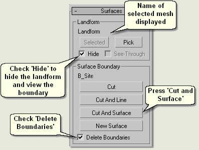 - Finally, press Cut and Surface. This cuts the landform and creates a new surface within the mesh called B_Site.01 Surface