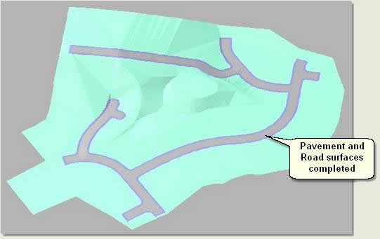 - Repeat this process, selecting the Surface_B_Site as the landform. Select all four pavement boundaries and press Cut and Surface. This automatically cuts and surfaces the pavement surfaces in turn
