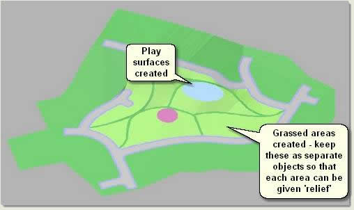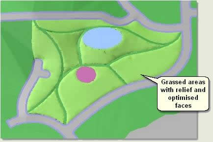 - Repeat this process on the remaining grass areas to produce optimised meshes with rounded relief and flat relief edges simulating grassed areas