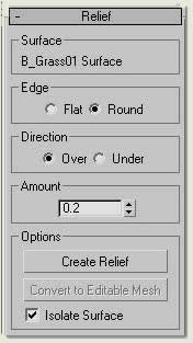- Use Key 3D Relief again, but this time choose Flat and Over with Amount 0.1. This raises the mesh up again, but gives flat relief to represent a cut grass edge