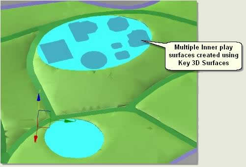 - Cut and Surface the play area using the remaining play surface boundaries. Using Key 3D Surfaces select all the boundaries at once before using Cut and Surface