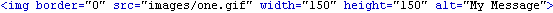 - Position your cursor after the height attribute and type in the attribute name and the message using the appropriate syntax. When you have done this, the IMG tag should look like this: